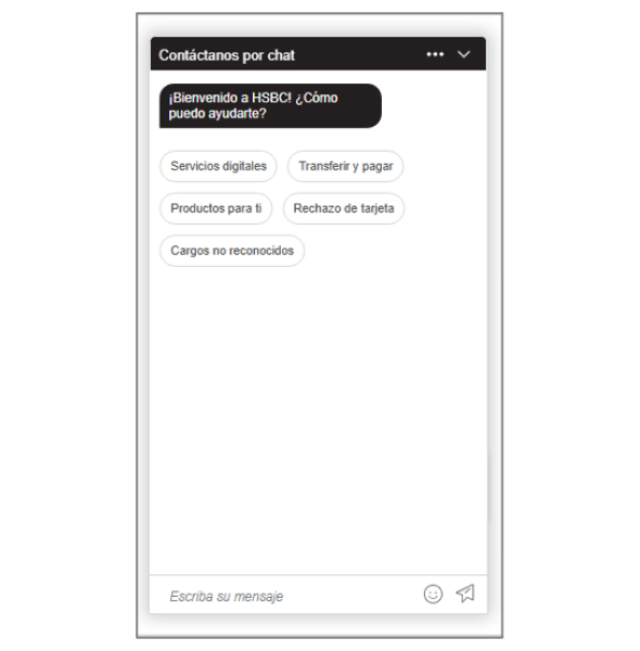 En el Chat de HSBC México podrás recibir ayuda especializada cuando lo necesites, esto te permitira ir al banco sin salir de tu casa, desde una plataforma accesible y segura en la palma de tu mano.