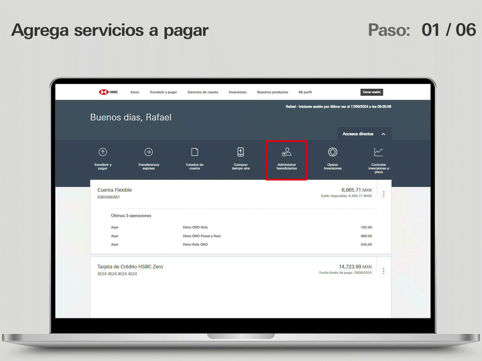 Paga tus Tarjetas de Crédito HSBC y otros bancos, agrega nuevos beneficiarios o servicios, modifícalos y más.