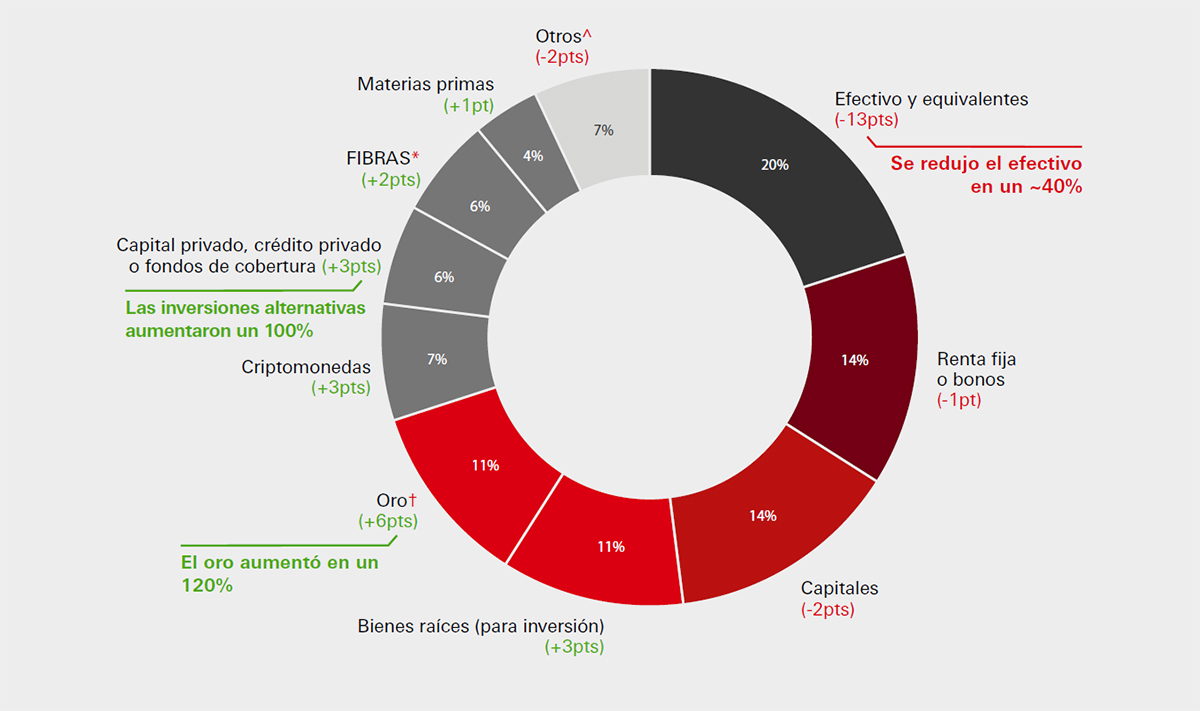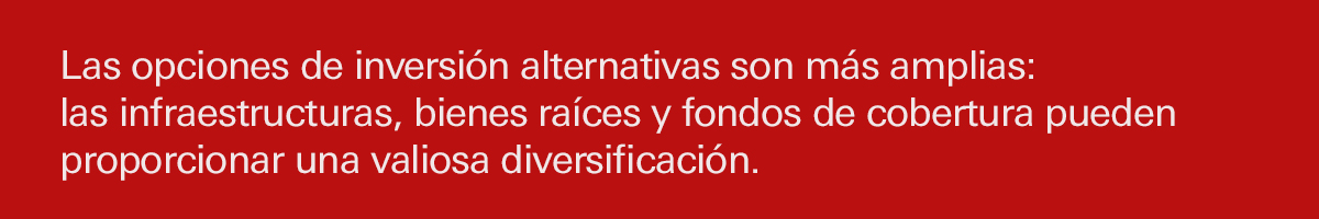 ^ Inversiones alternativas se refieren a capital privado, crédito privado o fondos de cobertura.